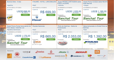 As ofertas são válidas para voos entre 01/10/12 e 31/03/13.